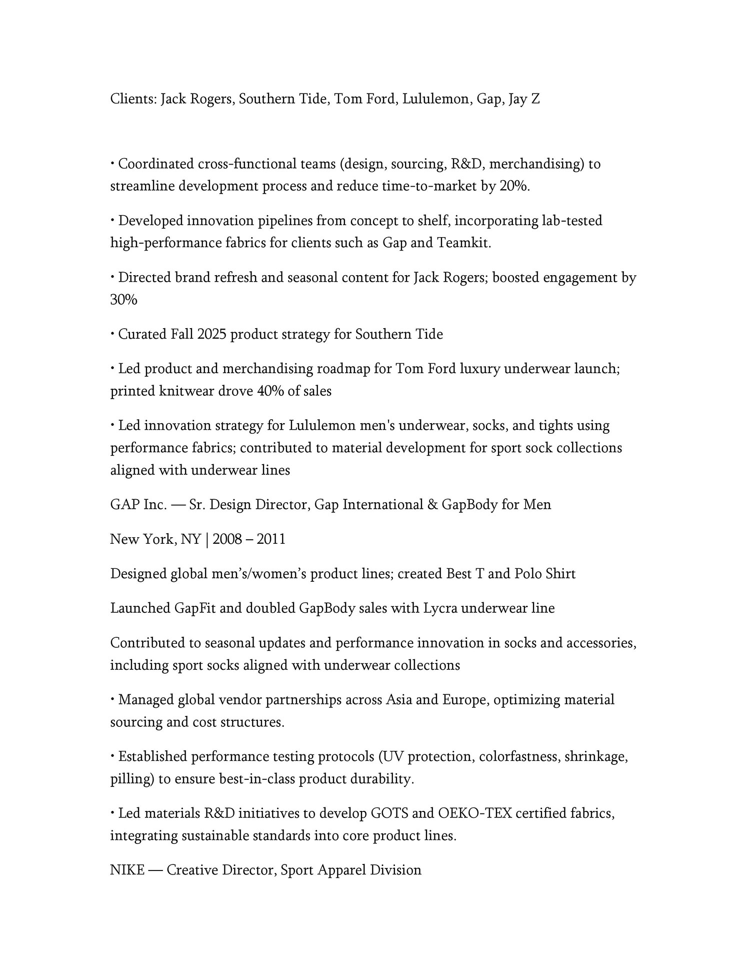 Michael Berkowitz has designed best selling collections for the world’s most successful labels including Calvin Klein, Gap, and Nike, creating iconic products including: Calvin Klein Boxer Briefs, Nike Tempo Short, and Gap Body Cotton Stretch Underwear.